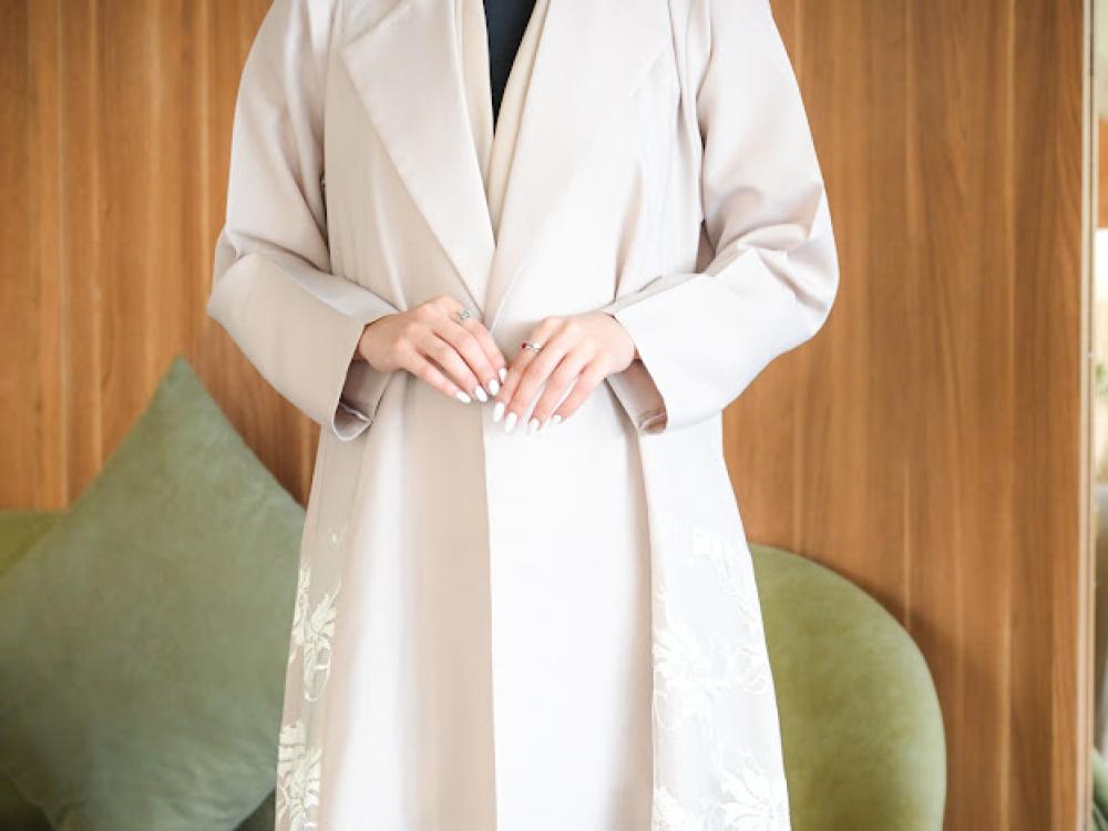 قصة بليزر مع تدخيلات دانتيل من الجوانب. الطرحة فيها تدخيلات دانتيل جانبية